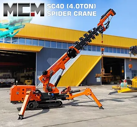 The MCM SC40 Spider Crane is a 4-ton lifting solution designed for maximum strength, compact maneuverability, and reliability in confined spaces.