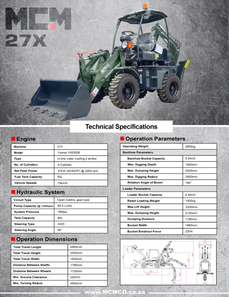 If you are searching for a TLB for sale in South Africa, the MCM 27X TLB is built for exactly the kind of work many businesses need every day: trenching, loading, backfilling, site preparation, farm work, and general construction support.