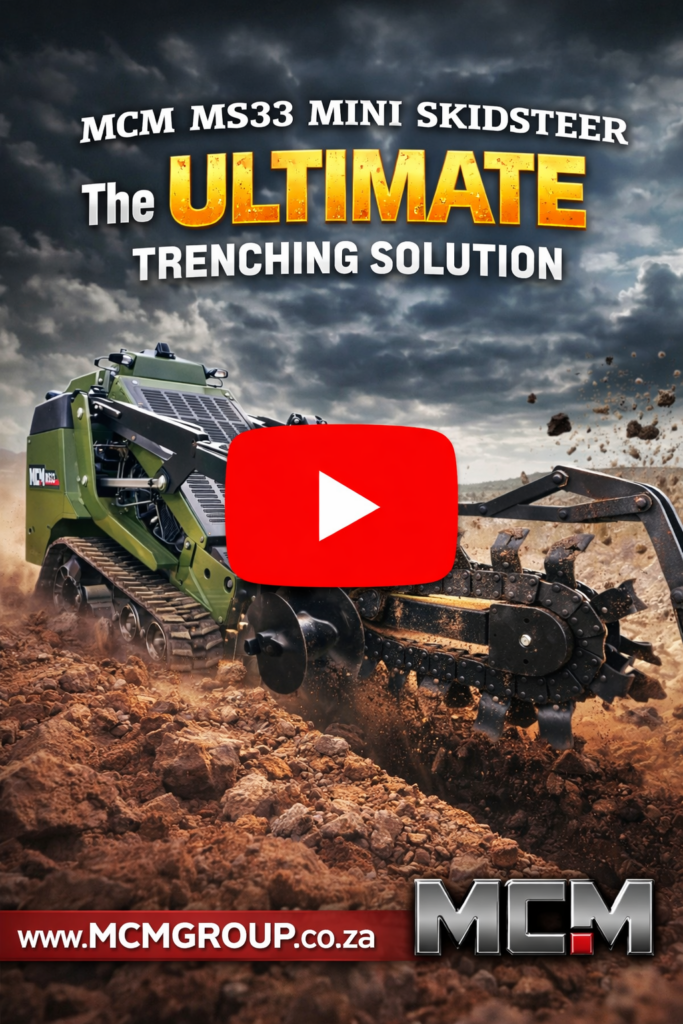 The phrase “Trenching is easy with the MS33 MCM Skidsteer” works because it reflects the machine’s real strength: versatility. The MCM MS33 Mini Skidsteer is the main product story, and the trencher attachment simply unlocks another highly useful application. With its Kubota 25HP engine, 67.2L/min hydraulic flow, compact 1033mm width, and compatibility with a wider attachment ecosystem that includes a chain trencher, the MS33 is well-positioned as a compact workhorse for South African sites.