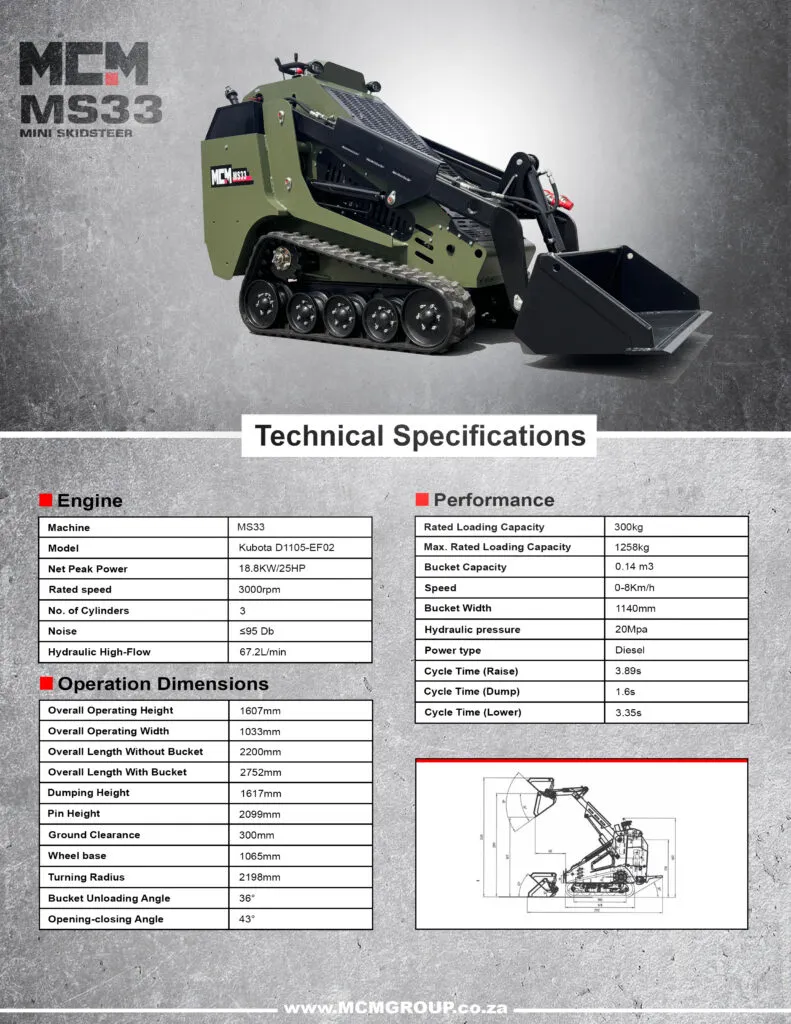 If you need a compact machine that can handle loading, support work, and trenching without stepping up to a larger loader, the MS33 deserves serious consideration.