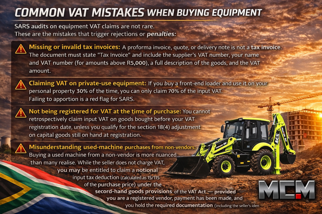 SARS audits on equipment VAT claims happen more often than you might expect. Below are the mistakes that trigger rejections or penalties.